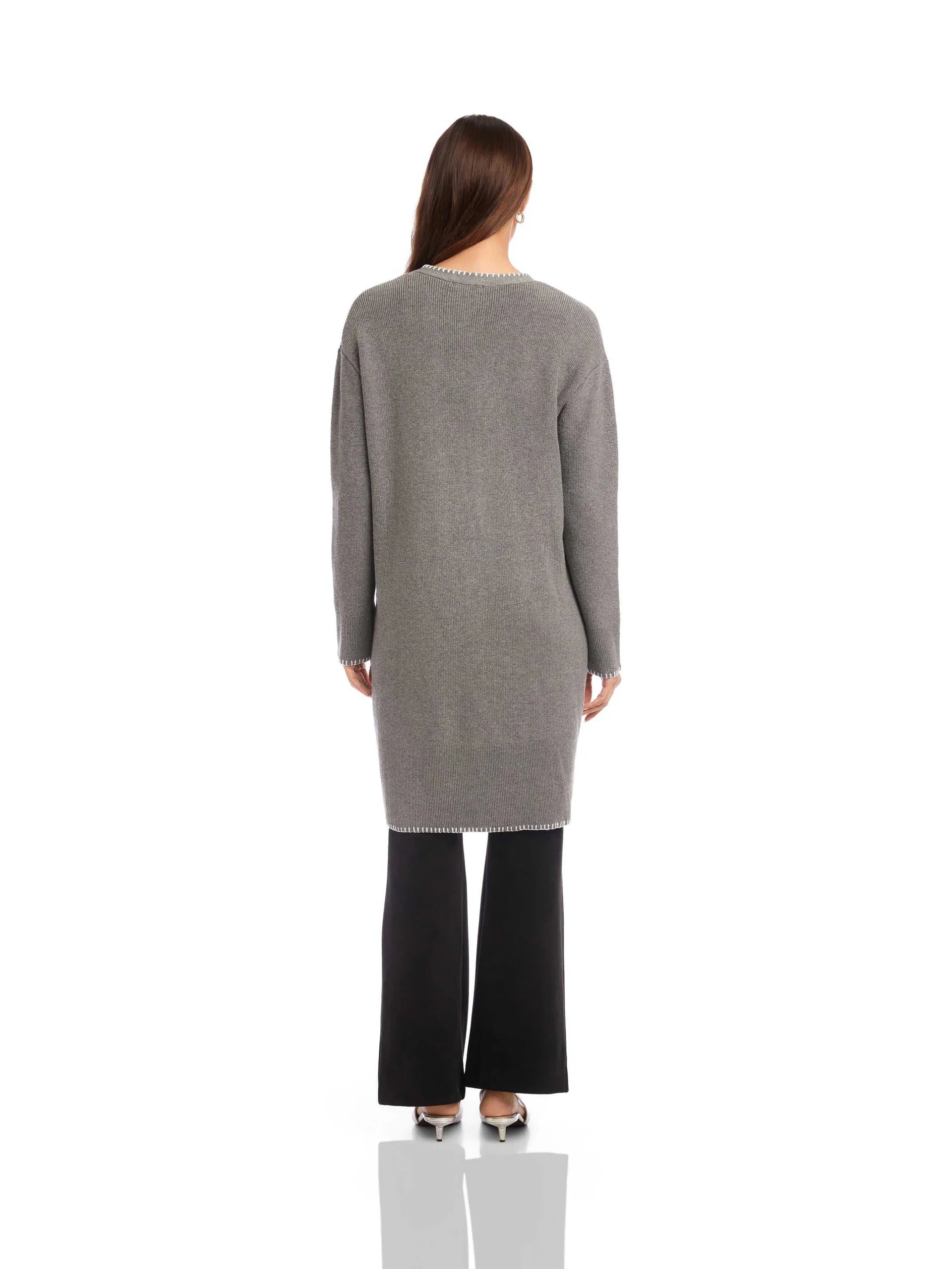 Crafted with a touch of cashmere for an ultra-soft feel, it features long sleeves, drop shoulders, and a relaxed silhouette for effortless layering. Contrast edge stitching adds a subtle statement detail, while front patch pockets and a button-down closure offer practical polish.