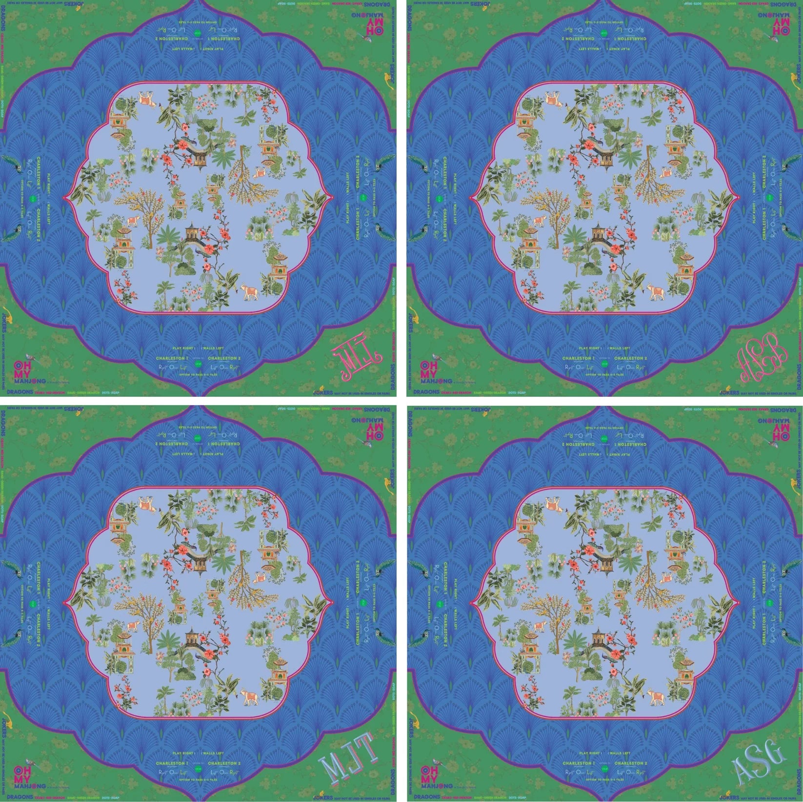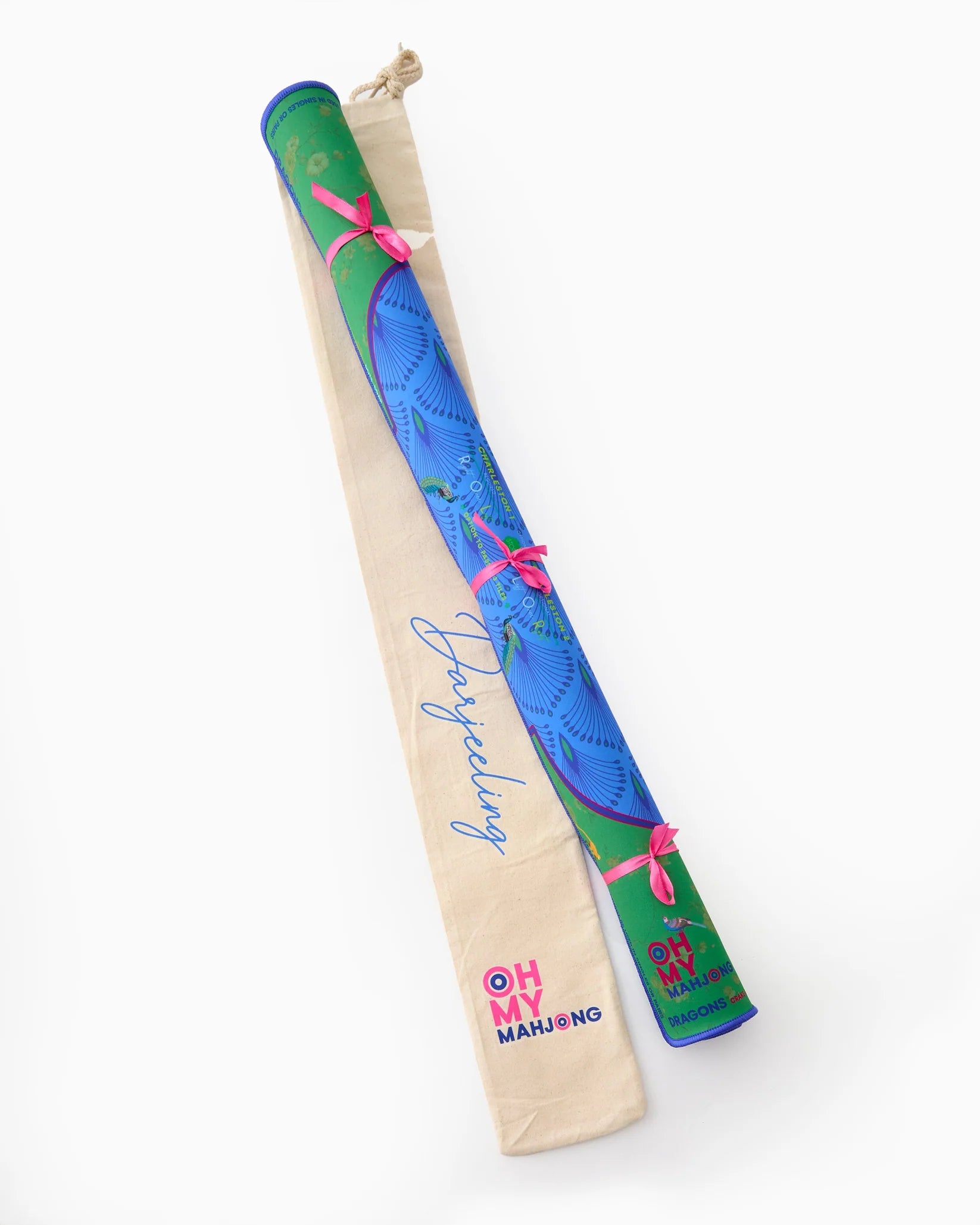 Introducing the Darjeeling Mahjong Mat—a sophisticated blend of elegance and tranquility, crafted to elevate your gaming experience. This exquisite mat features a harmonious palette of blue and green hues, evoking the serene beauty of nature and the refined charm of classic design. Made from neoprene, the Darjeeling Mat offers a smooth, luxurious surface for your tiles, ensuring optimal comfort and effortless play. The non-slip bottom guarantees stability, allowing you to focus on your strategy and enjoy each game to the fullest. Embellished with discreet instructional reminders along the sides, this mat combines functionality with grace.