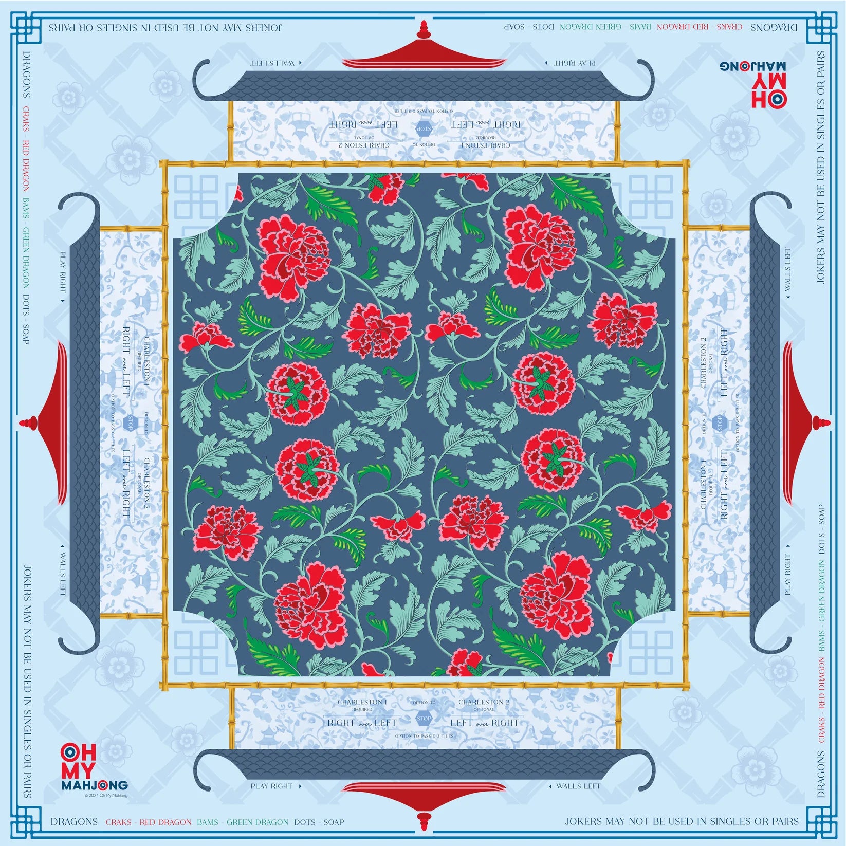 Introducing the Liberty Mahjong Mat, designed to pair seamlessly with our Nantucket Tiles designed by Taylor Paladino. This mat radiates coastal elegance, showcasing classic patterns that echo the timeless beauty of our nation. Made from neoprene for easy cleaning and featuring a rubber non-slip backing, the Liberty mat is as practical as it is stylish. With instructional reminders around the edges, this mat ensures an enjoyable and seamless playing experience from start to finish.